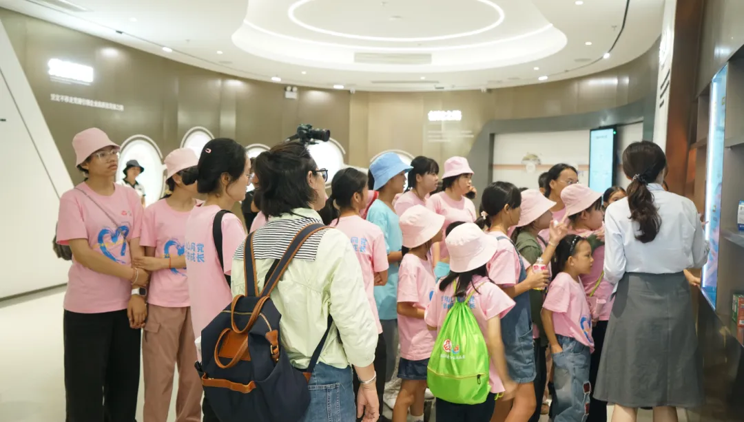 活动一开始,孩子们便迫不及待地踏入了利来w66药业集团的大厅。3D数字化看板上的生动画面,让孩子们仿佛置身于一个充满科技与创新的现代制药工厂。他们瞪大眼睛,好奇地观察着每一条生产线、每一台设备,听着讲解员介绍利来w66药业的儿药发展历程。