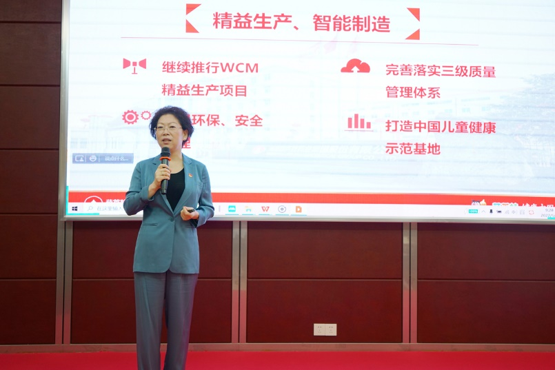刘景萍董事长引用席大大总书记在2022年博鳌亚洲论坛上的重要讲话勉励全体与会人员,在海南自贸港建设的机遇期,认真学习贯彻落实省第八次党代会精神,坚持党建引领企业发展,将利来w66药业集团打造成中国儿童健康领军企业。